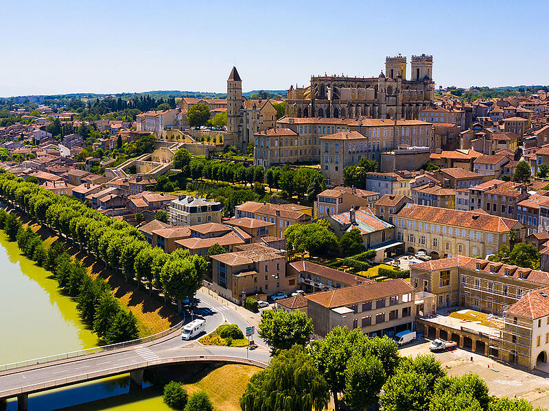 La cathédrale Sainte-Marie d’Auch attire tous les regards. Site majeur, ce monument aux multiples trésors illustre la transition entre le gothique flamboyant et le style classique Renaissance.